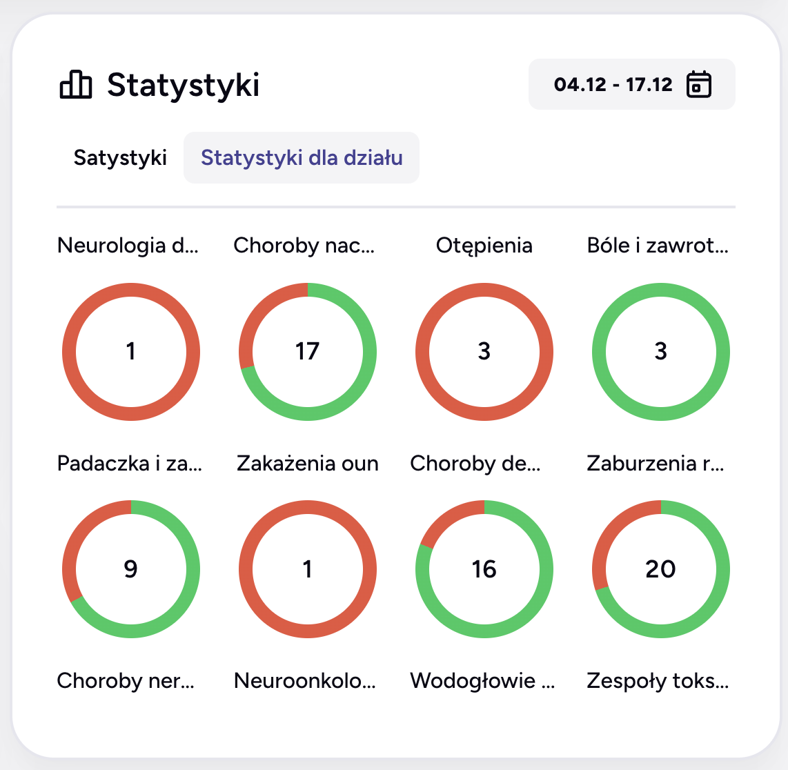 6. Nowe statystyki - rozbudowane statystki pokazujące dane z podziałem na poszczególne działy oraz umożliwiające przeglądanie statystyk w określonym przedziale czasu. Statystki znaleźć można na stronie startowej panelu.